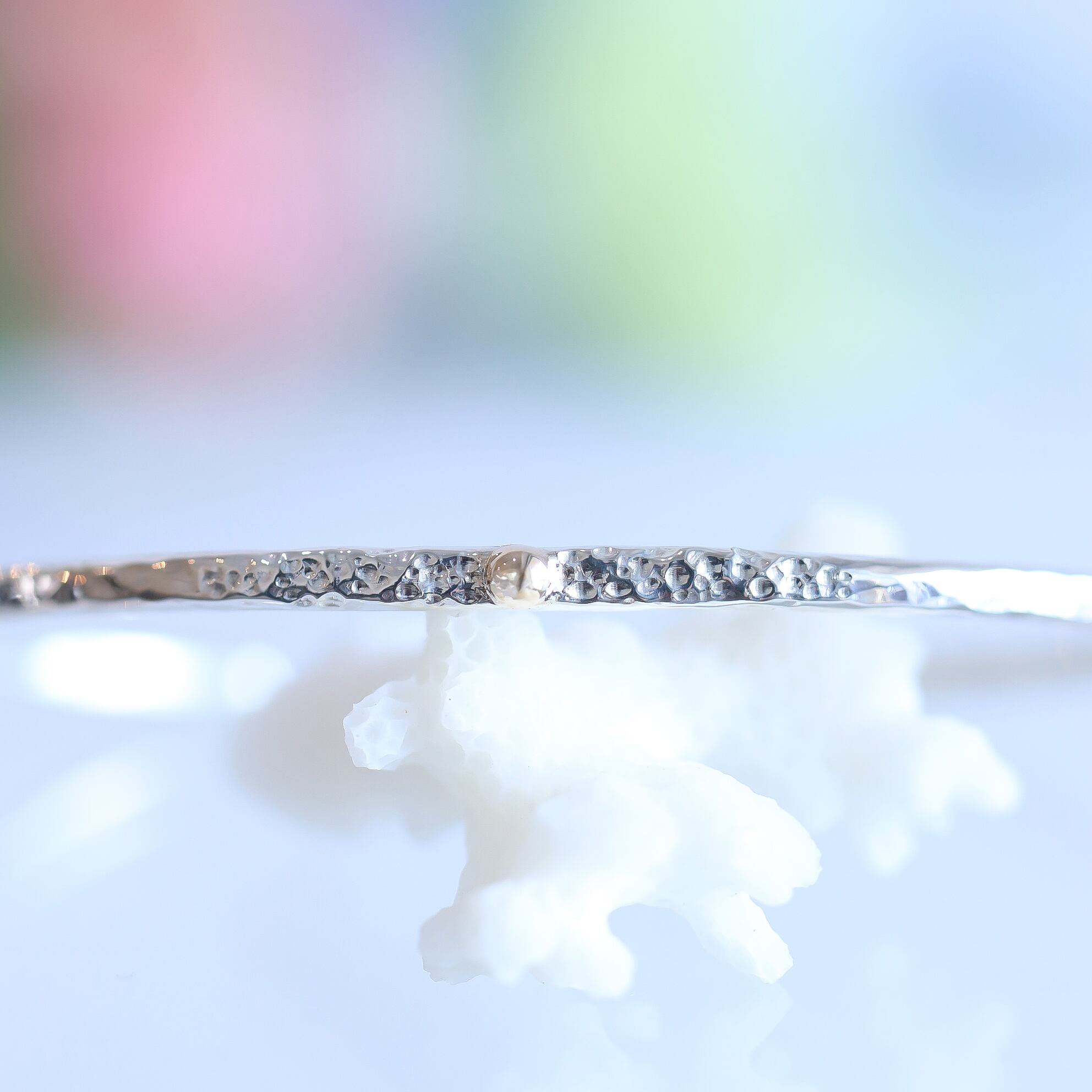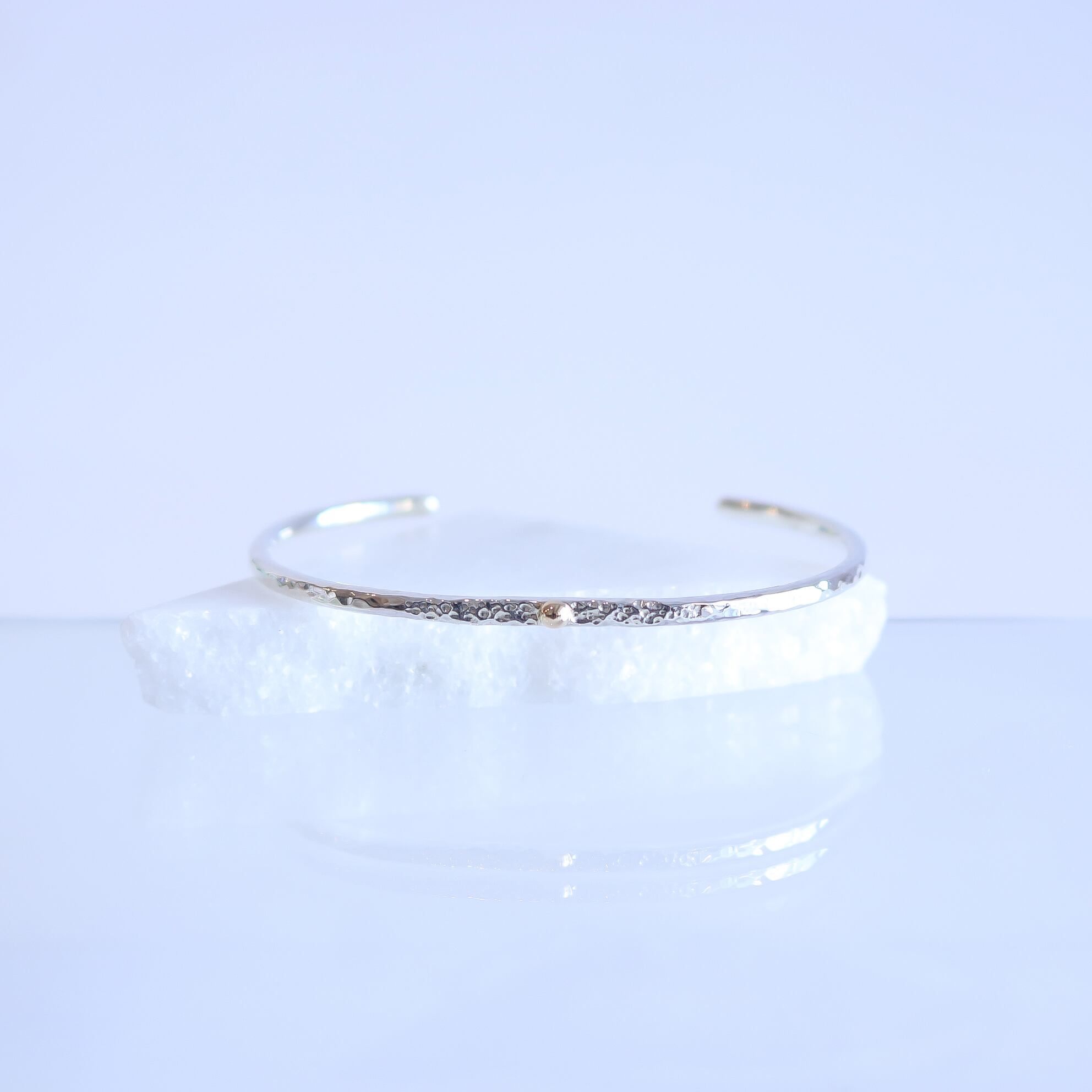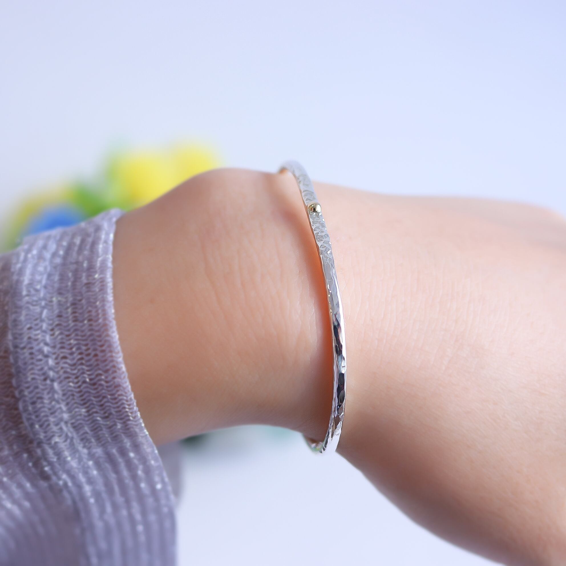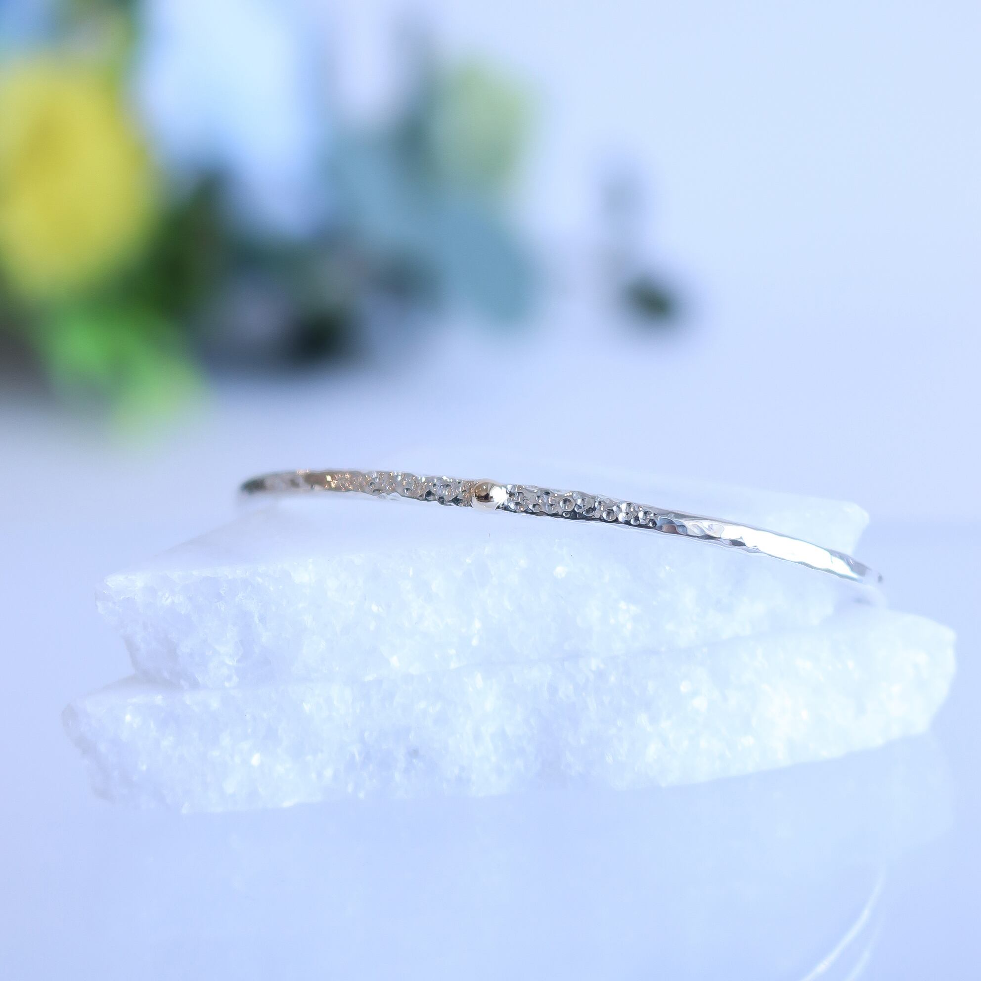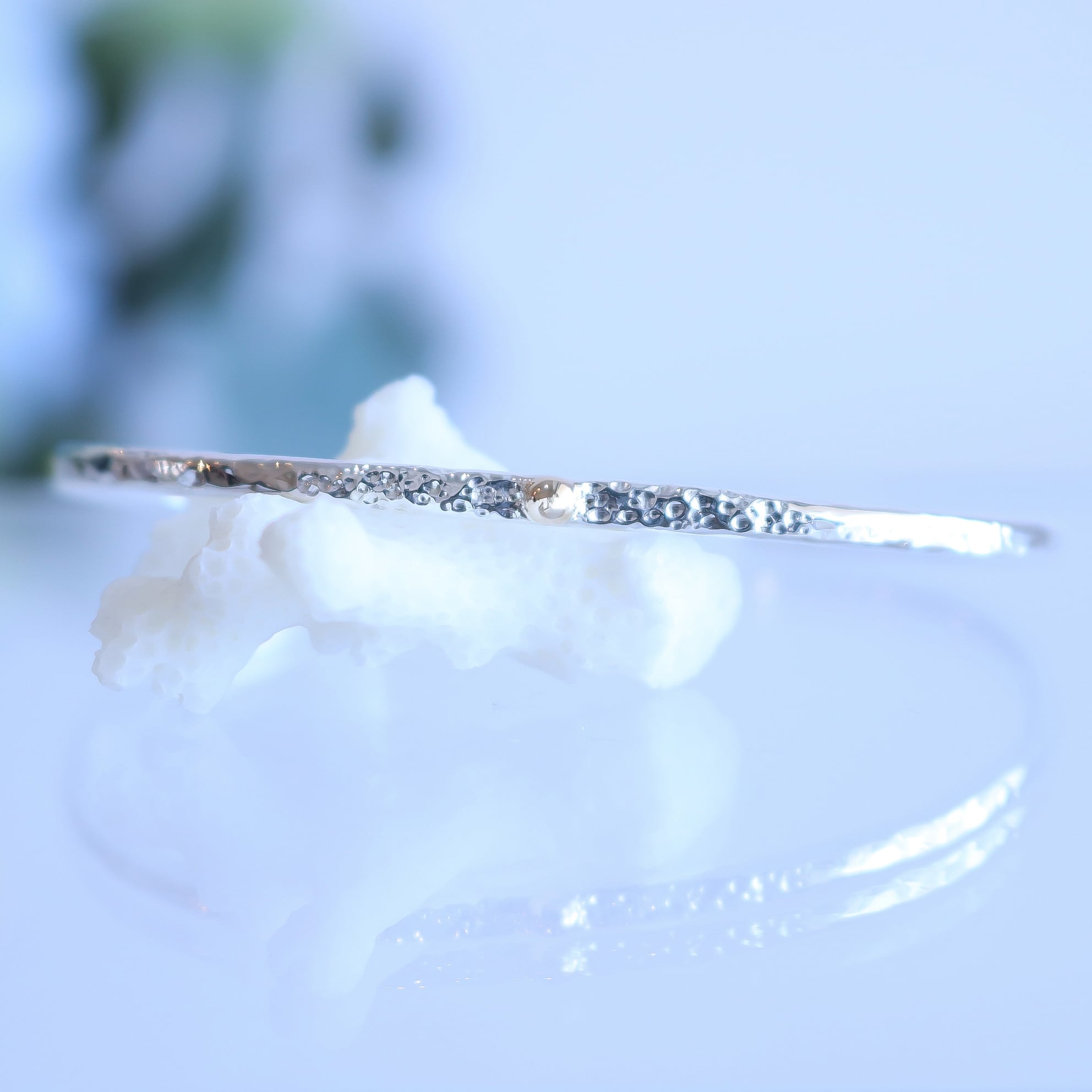 シンプルなシルバーのバングルにK10の粒がワンポイント!一つでも存在感を放ちながら、お手持ちのアクセサリーとの相性も抜群です!軽やかな着け心地で、手元をさりげなく美しく演出します。カジュアルなシーンから特別なイベントまで幅広くご利用いただけます。シンプルな中に個性を感じさせるこのアイテムをぜひお楽しみください。