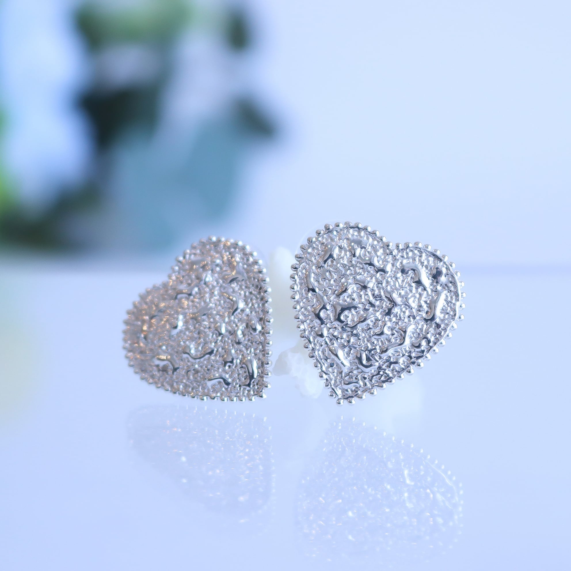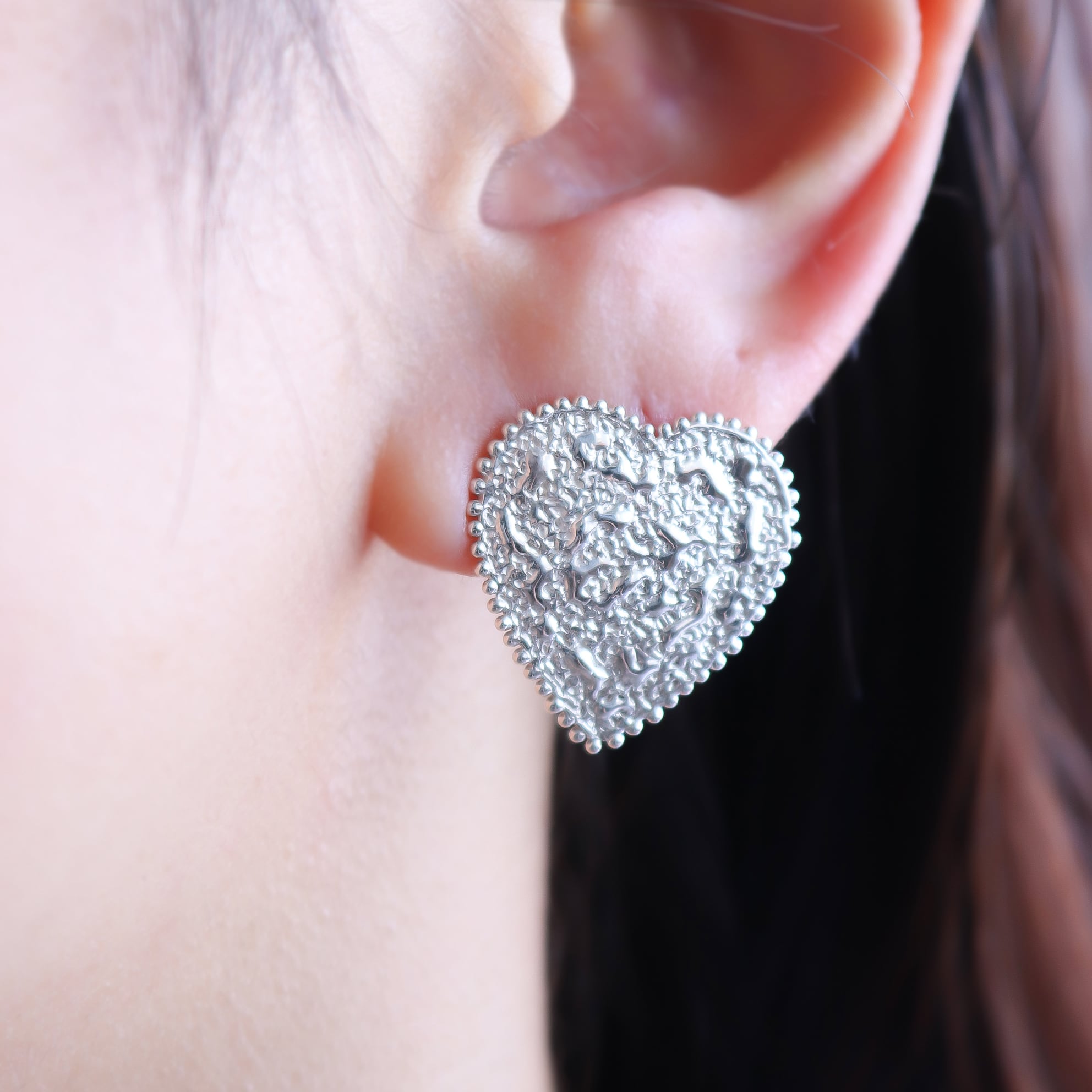 シルバーの美しい輝きに、つぶつぶとオリジナルテクスチャーが施されたピアス。そのユニークなデザインは、一つだけでも存在感を持ちながら、お手持ちのアクセサリーとの重ね付けも楽しめます。薄くて軽やかな着け心地で、耳元を美しく魅せてくれます。カジュアルなシーンから特別なイベントまで、さまざまな場面でお使いいたたけます。