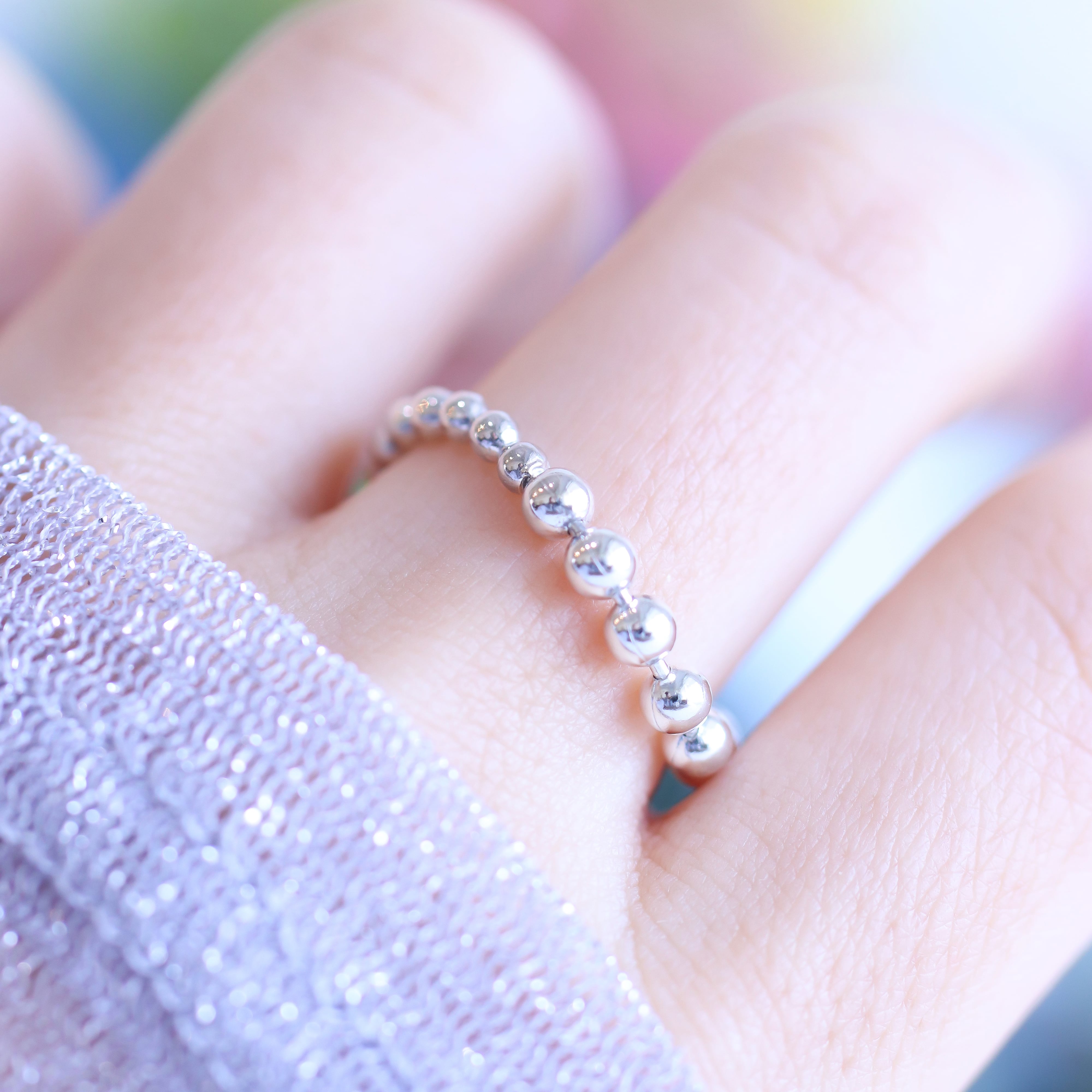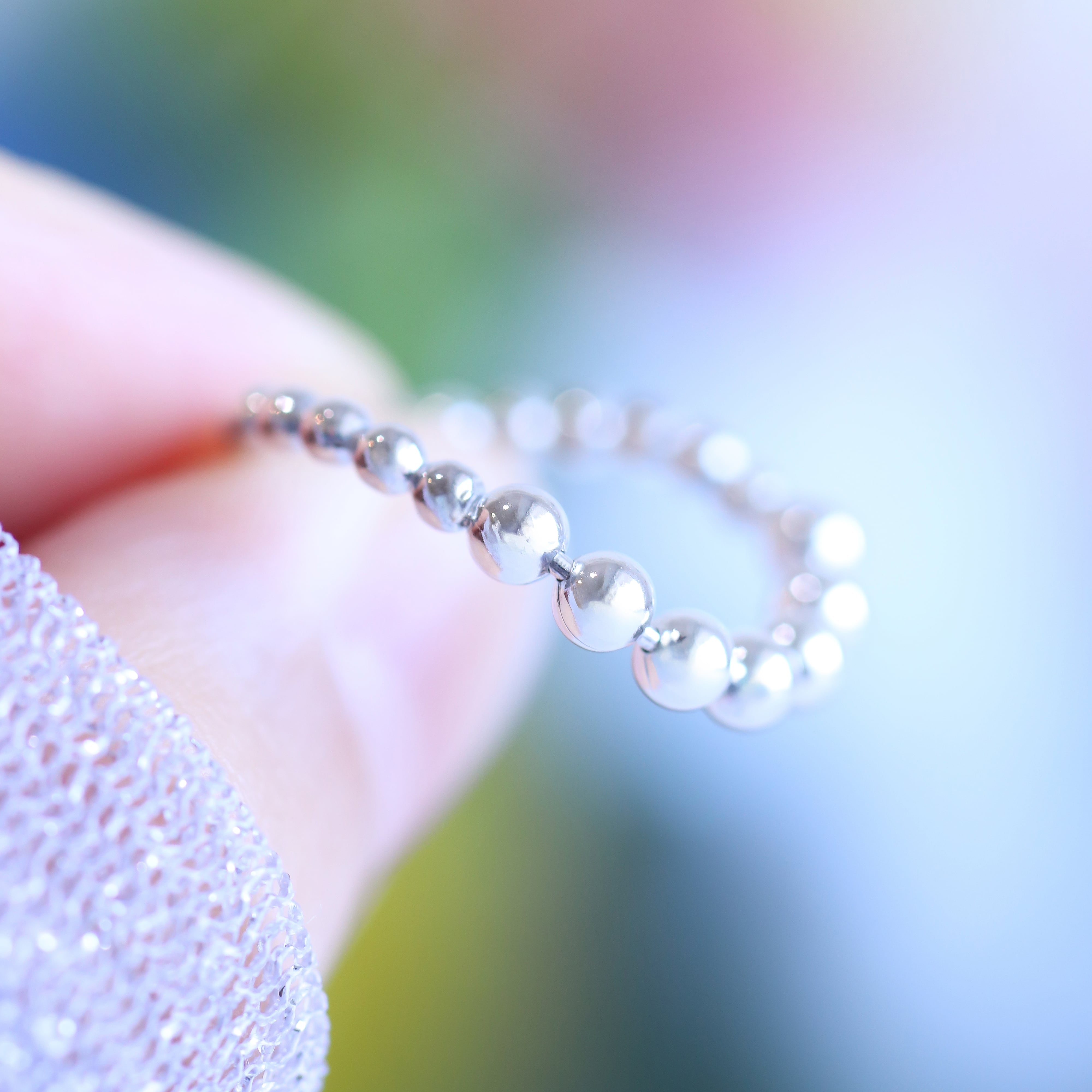 サイズの異なるボールチェーンが特徴のアイテムです。カーブさせたデザインが動きを生み出し、個性的なスタイルを演出します。ユニークなラインが目を引き、日常使いから特別なシーンまで様々な場面にフィットするアイテムです。シンプルながらも存在感のあるこのリングをぜひお手元でお楽しみください。