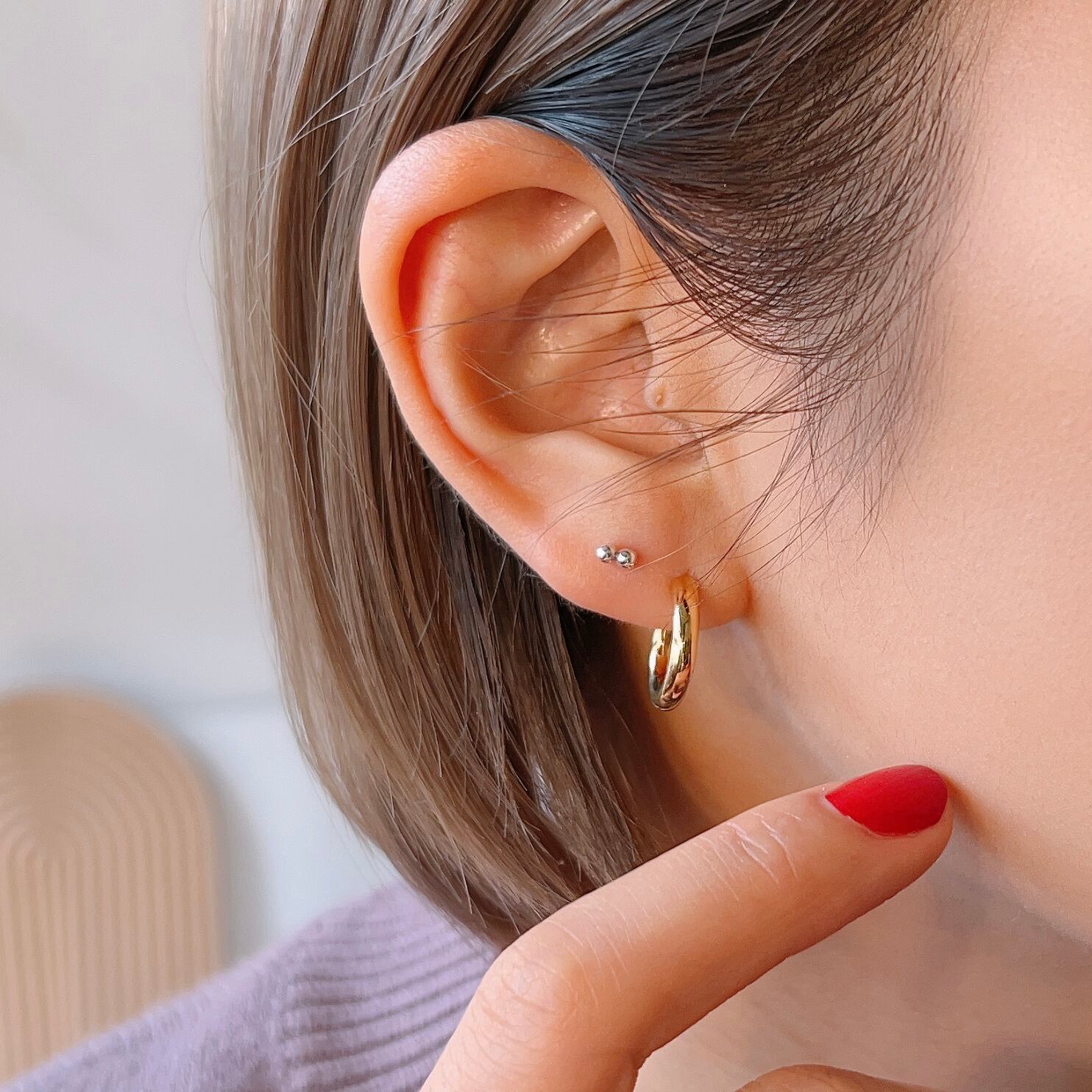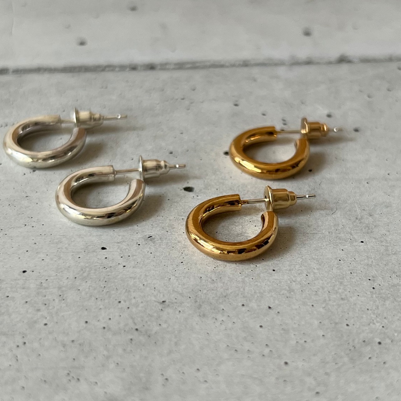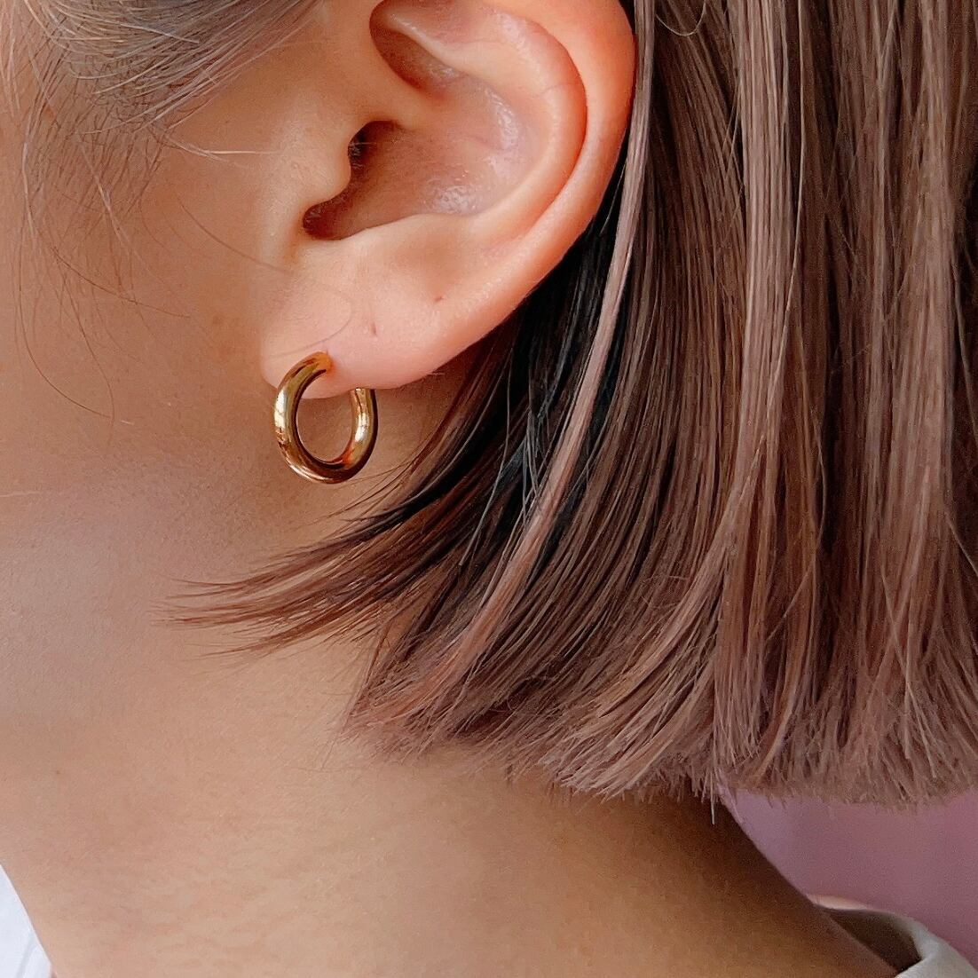 シンプルなフープピアスで、ファッションやシーンを問わずお使いいただけるので、ひとつは持っておきたい万能アイテムです。