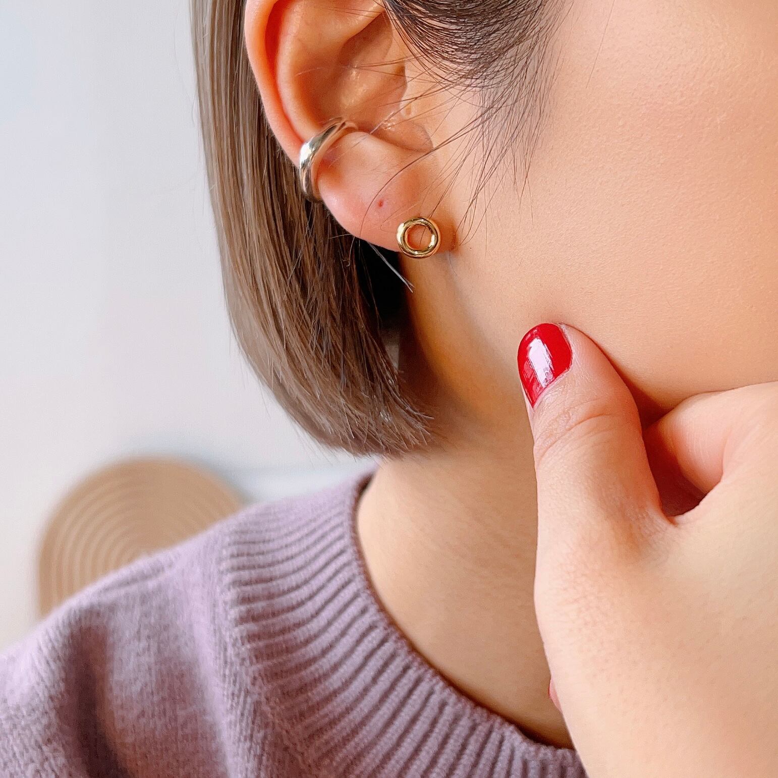 2mmの銀線を使用して製作した片耳用のピアス。マルっと小ぶりなデザインで耳元を華やかに魅せてくれます。ユニセックスデザインなのでペアピアスとしてもお使いいただけます。ピアスホールが複数あいている方はお手持ちのピアスやイヤーカフとの重ね付けにもおすすめです。