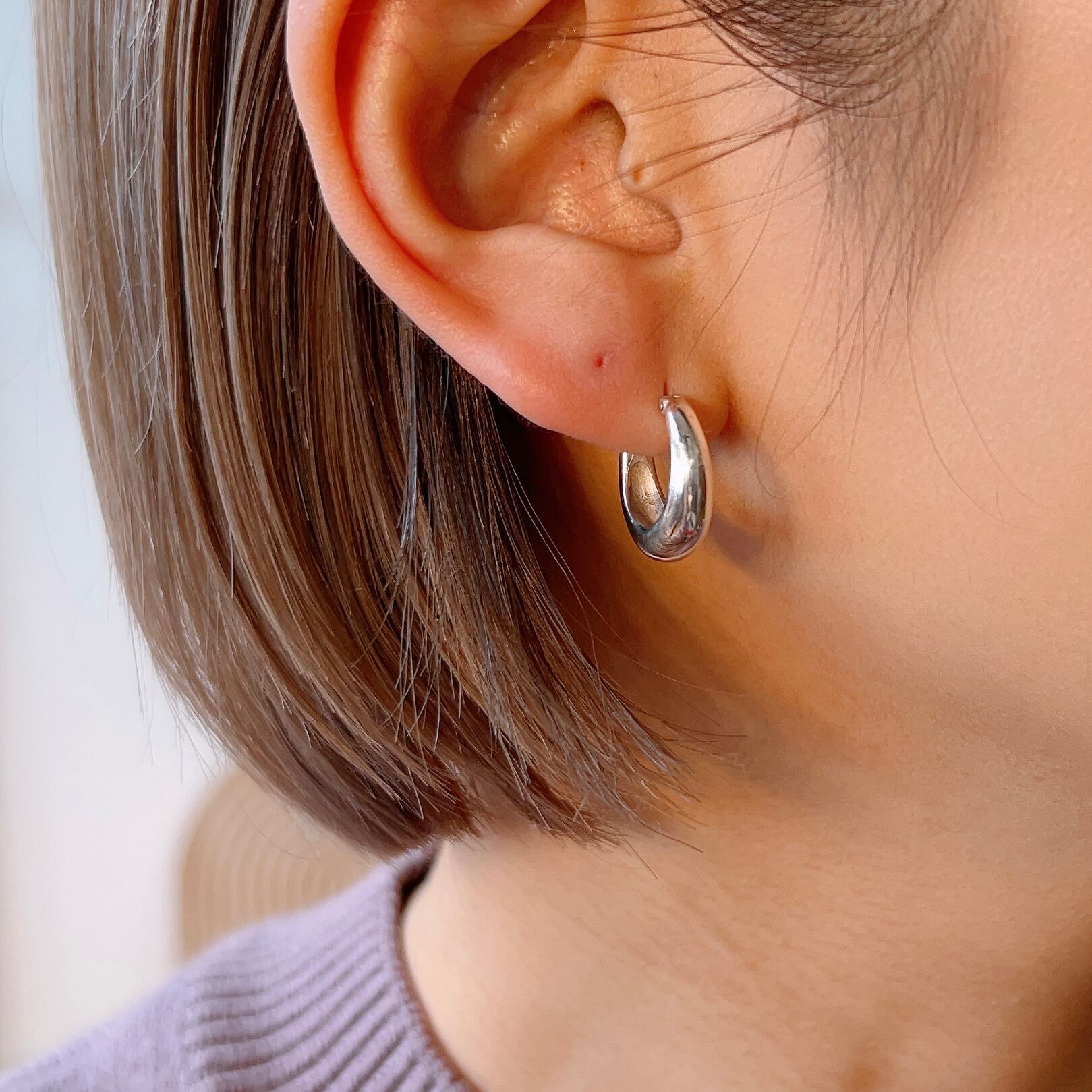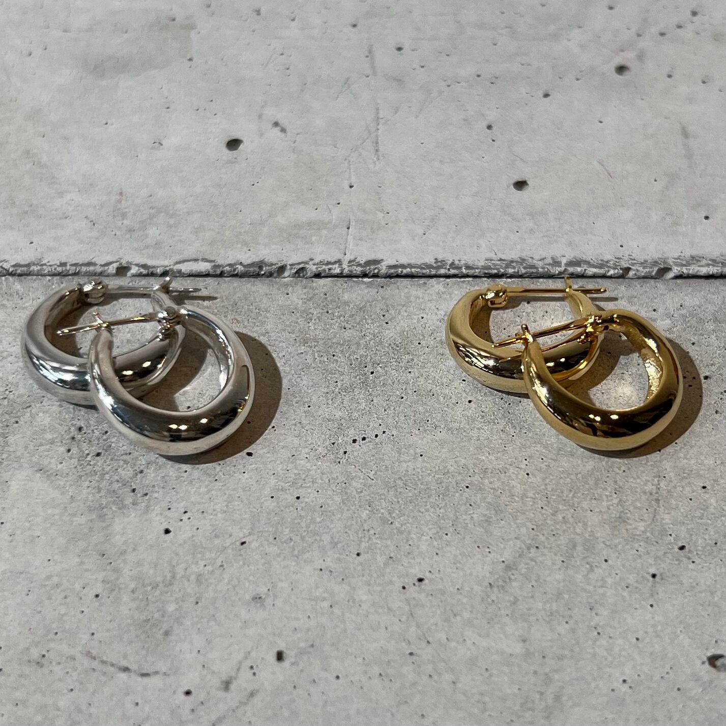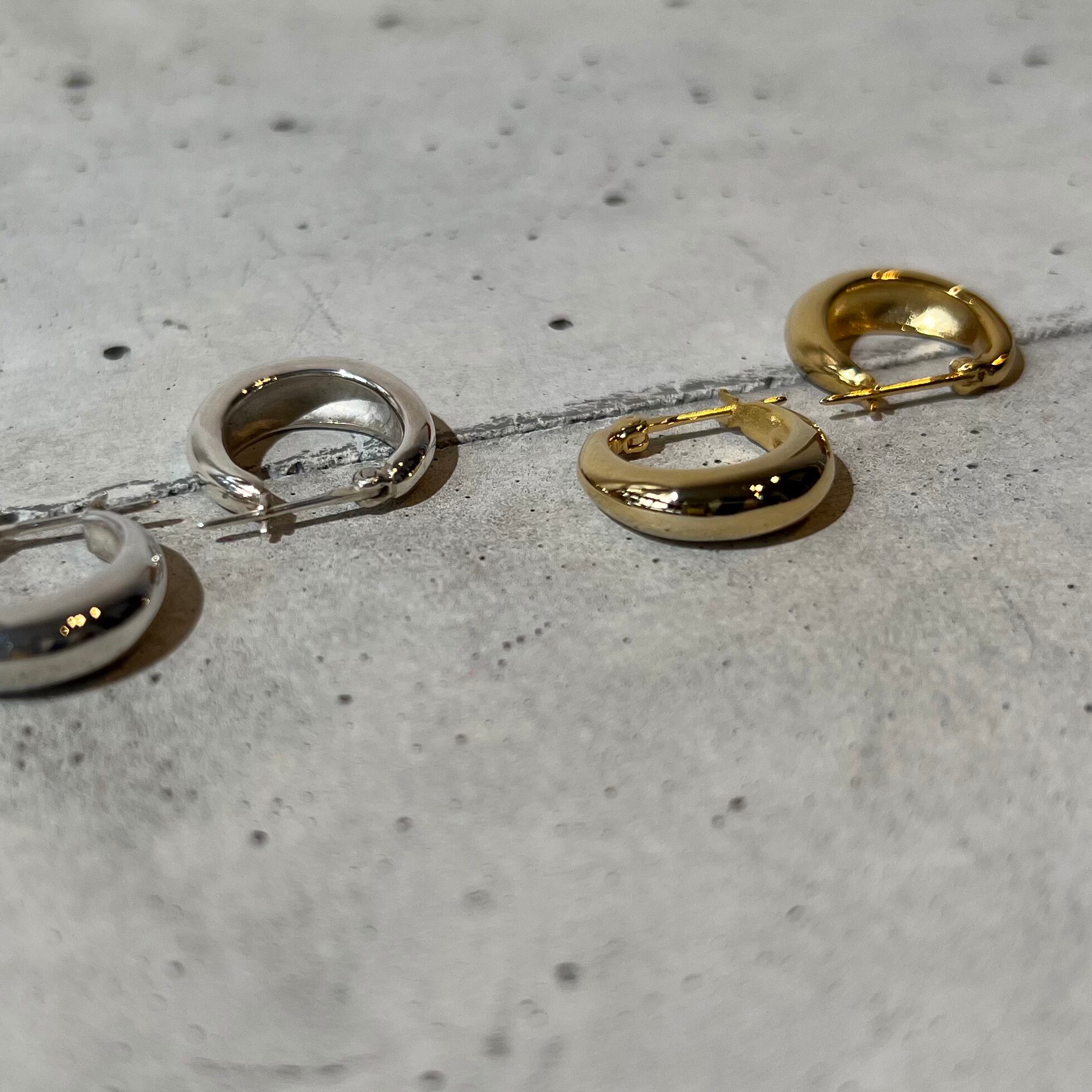 クロッシングフープピアスのミニサイズです。キャッチ部分の引っかかりもないので、マスク生活の世の中でもストレスフリーで着用できます。
