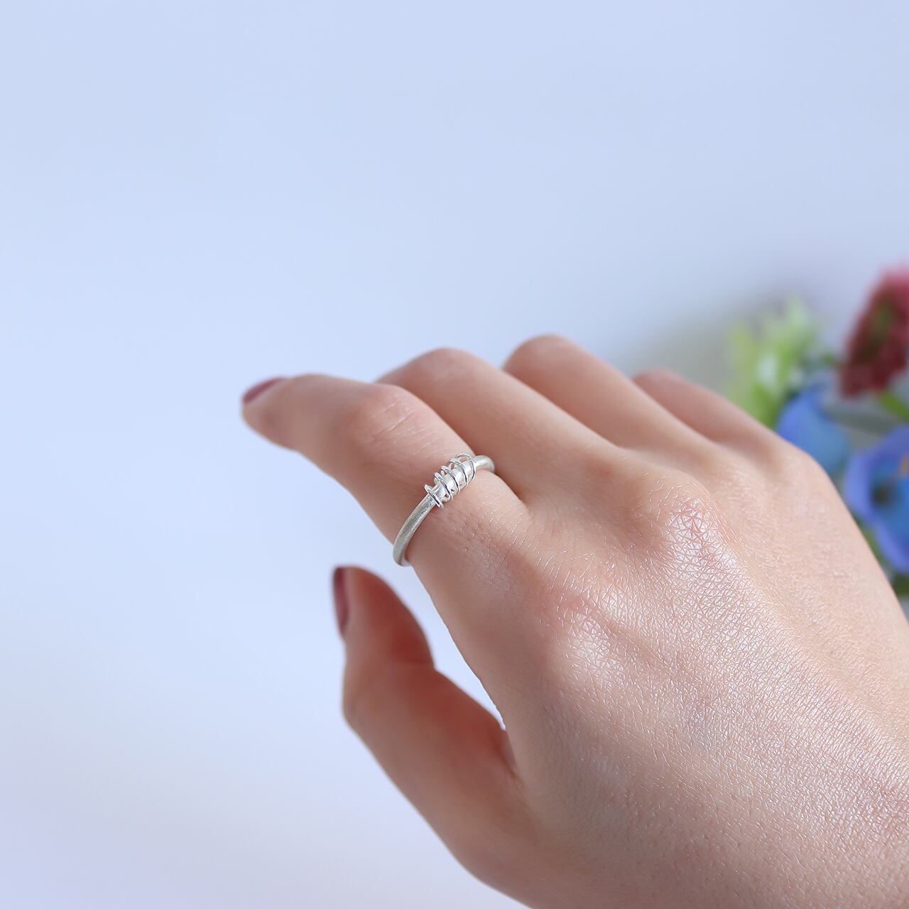 シンプルなラインリングに細い線をコイルのように巻きつけたリング。隙間を開けて巻くことで抜け感があり上品に魅せてくれます。洗練された美しさを持ちながらも、手元に馴染む柔らかな印象を与えてくれます。どんなシーンにもマッチし、日常使いはもちろん、特別な日のおしゃれにもぴったりなアイテムです。是非お手元でお楽しみください。