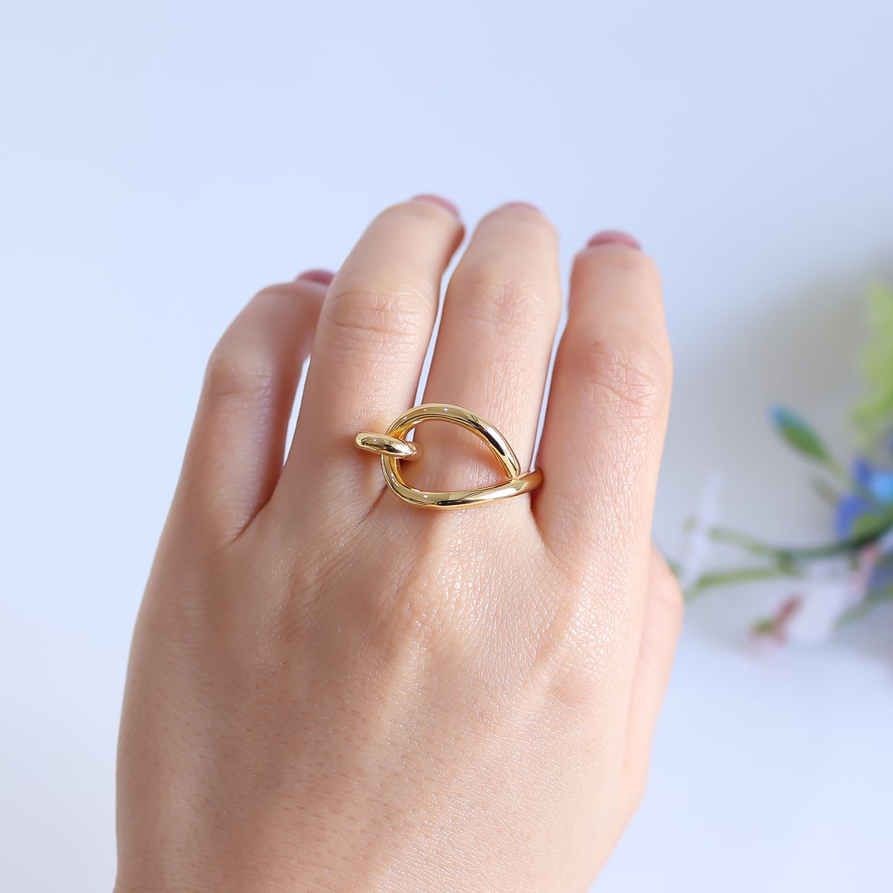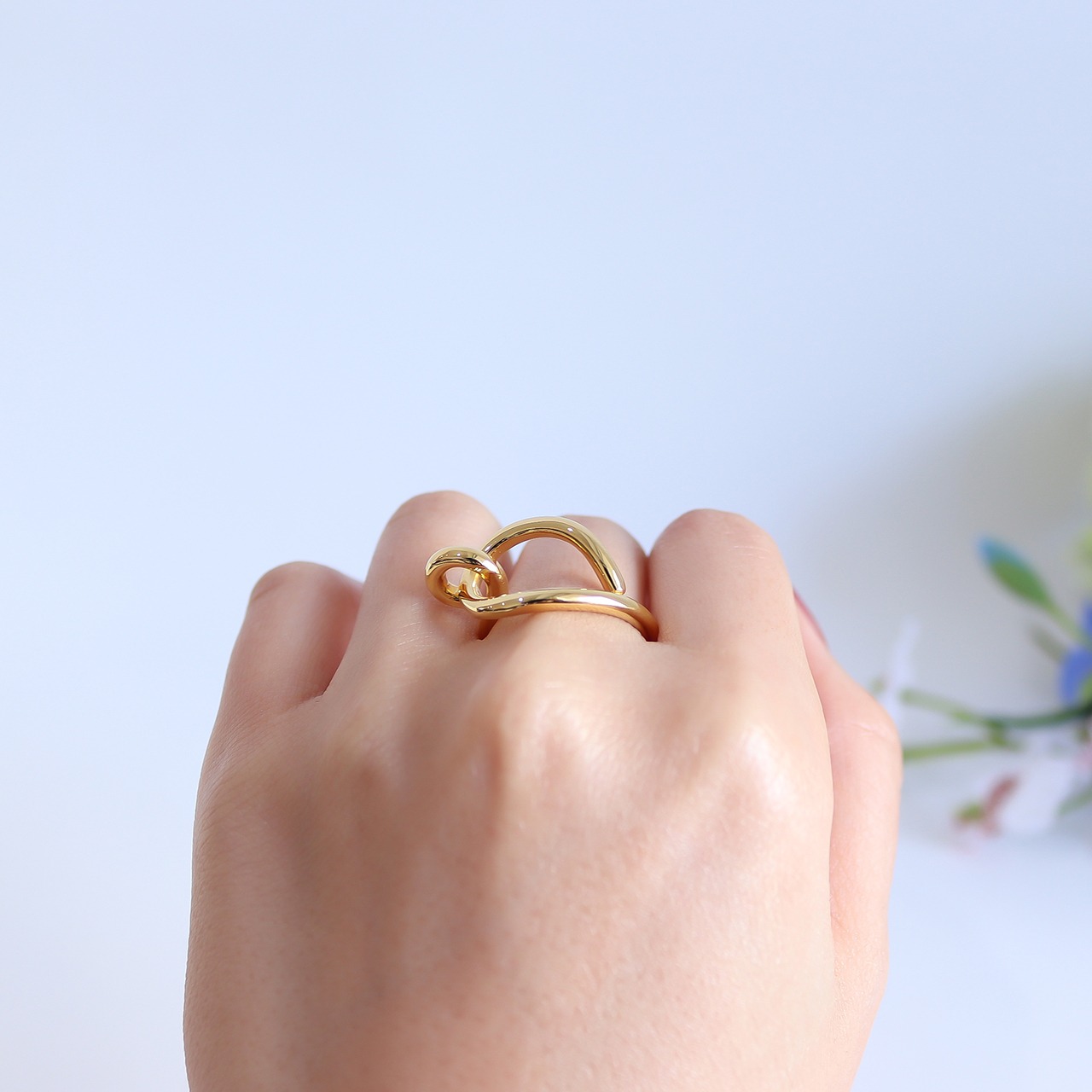 1本の丸線を知恵の輪のように曲げて製作したリング。ボリューム感もありインパクトあるデザインですが抜け感もあり重たくなりすぎずに着用していただけます。コーディネートのワンポイントにいかがでしょうか。